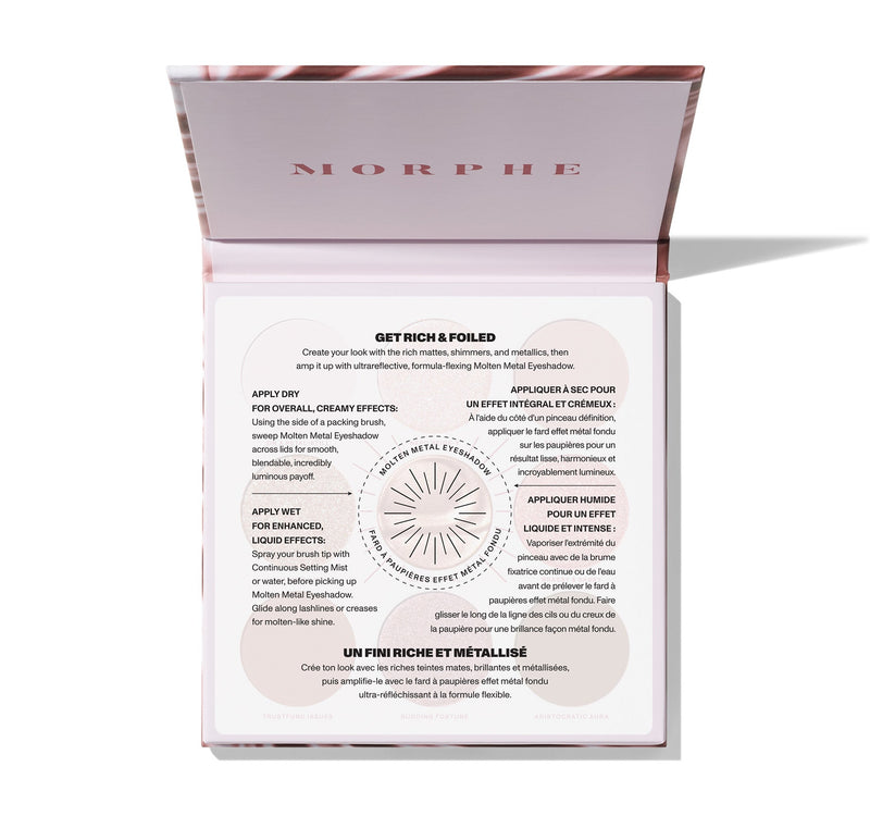 Discover a wealth of possibilities in a flash with Morphe Rich & Foiled Eyeshadow Palettes. Inspired by the unstoppable allure of precious metals, these excessive and expressive nine-pan curations elevate eye artistry with luxe mattes, shimmers, and metallics—plus, a crown jewel: a debut foil-effect Molten Metal Eyeshadow. Apply it dry for overall, creamy, incredibly luminous payoff or wet for enhanced, molten-like shine.